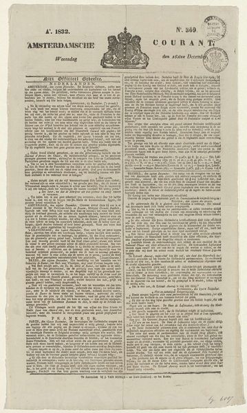 This is the "Vaderlandsche Courant van 10 mei 1784", a Dutch newspaper printed by the Baalde Brothers. The overall structure of the newspaper is defined by a rigid grid. Vertical columns organize dense blocks of text, creating a sense of order. However, this order is immediately destabilized by the irregular edges of the paper, reminding us of its material existence as an object subject to decay and use. The typeface itself is a powerful element. Its sharp serifs and varying stroke widths lend a formal, almost imposing quality, yet the slight imperfections in the print—the unevenness of the ink, the occasional blurring—hint at the human effort behind its production. Semiotically, the text functions as a carrier of information, but also as a visual signifier of authority and knowledge. This interplay between order and disorder, between the ideal of rational communication and the messy reality of material existence, invites us to reflect on the nature of information itself and its role in shaping public discourse. The newspaper presents itself as a window onto the world, but it is also a carefully constructed artifact.