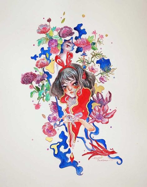 Daria Theodora's 'Secret Room' presents us with a young woman amidst a vibrant tapestry of life and surreal imagery. The abundance of floral motifs around her dress, a symbol often associated with beauty and transience, evokes Botticelli’s 'Primavera,' where flowers herald the arrival of spring and rebirth. However, here, these symbols are imbued with a melancholic tone. The birds and small animals, nestled close to the girl, echo the classical motif of 'Psyche,' often depicted with animal companions, representing the soul's journey and transformation. Light bulbs containing miniature scenes create a dreamlike effect that suggests a hidden world, echoing the Renaissance concept of the 'camera obscura,' a darkened room where images of the outside world were projected. This recalls Plato’s cave and the way that humans perceive the world. The penguins, a symbol of community and resilience, reflect the psychological depths and the longing for connection and self-discovery. The overall composition conveys a profound engagement with the viewer, inviting contemplation on our inner worlds. The motifs cycle through time, reminding us of the perpetual evolution and reinterpretation of symbols across cultures.