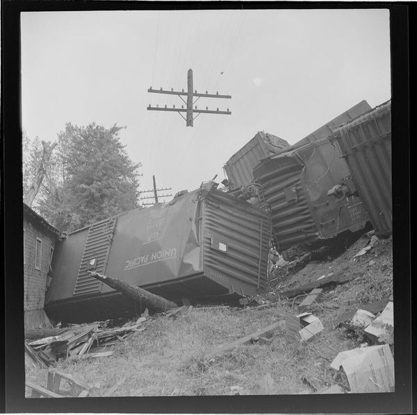 Curator: This silver gelatin print by Jack Gould, titled "Untitled (bridge construction)," captures a bridge in the midst of being built. Editor: It's compelling! The black and white palette creates a strong sense of industrial grit and ambition, don't you think? Curator: Absolutely. The photograph shows us how bridges were assembled, highlighting the labor and materials involved in infrastructure. There are many unseen workers. Editor: Right, it speaks volumes about progress and the reshaping of urban spaces, often at the expense of marginalized communities who bear the brunt of such construction. Curator: True, but seeing the raw materiality reminds me that art, like this bridge, is always a product of material processes and social conditions. Editor: It's a stark reminder that every structure, whether physical or social, has a complex and often contested history. Curator: A history of production and labor, as well as displacement and progress. Editor: Precisely. I'm left thinking about who benefits from these grand designs, and at what cost.