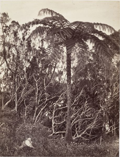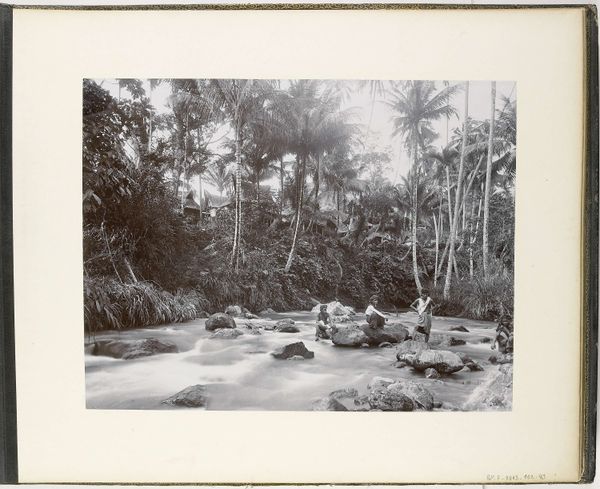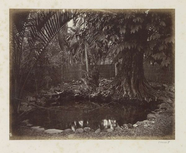 Curator: This albumen print, potentially from 1867, captures the "Seaside Resort and Immediate Surroundings of Candi Panataran on Java, Indonesia," by Isidore Kinsbergen. What are your first thoughts on seeing this image? Editor: I'm struck by the feeling of decay and the overwhelming presence of nature reclaiming the stonework. There's a sense of time folding in on itself, past and present coexisting in this ruin. Curator: Indeed. Consider the albumen process—layering egg whites onto paper before coating it with a silver solution. Kinsbergen's deliberate application is central. Think of the labor involved in both creating this photographic image and the temple it represents. Editor: That makes me think about access and perspective. Who had the means to commission or consume photographs like these, and what narratives did they reinforce about colonialism and exoticism of the area depicted? Was this sold back home in Europe or locally in Indonesia, and to whom? Curator: Exactly! And in what social context did this image arise? Kinsbergen, working in the Dutch East Indies, was documenting this cultural landmark with an understanding rooted in western artistic traditions but produced and distributed to distinct markets and communities. Editor: This contrast sparks many questions about how power operates here. Kinsbergen captures what survives but there is much implied in the selection. What are the ethics around whose stories get represented in heritage documentation and whose get sidelined? How does the "seaside resort" element factor into this equation of landscape and luxury? Curator: Such pertinent points regarding labor and context! The texture alone indicates a careful, repetitive layering in this albumen process. He likely wasn't just pressing a button. Also, it makes one consider the sheer volume of such photographs being created to archive such monuments across this archipelago and beyond! Editor: The medium itself also raises an essential materialist consideration: what sort of degradation may this photo exhibit? Considering its date, 1867, its composition and visibility seems pretty sturdy here today—this endurance and resilience certainly reflects the Candi Panataran temple's enduring spiritual power within the landscape. Curator: Agreed. Seeing this work provides so many distinct layers for us to examine! Editor: Indeed. We might ask, what dialogues does this object open up when approached via cultural lenses?