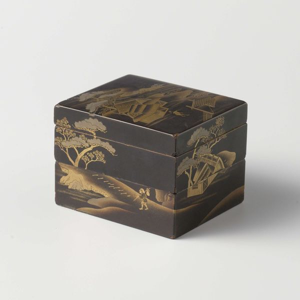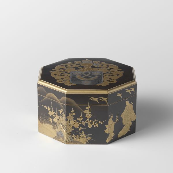 Although the motif of autumn grasses on this box is traditional, the style is very different from lacquerware produced before 1900. Instead of a stylized composition, the box bears what is almost a painting in lacquer, with tall cedars creating depth. The decoration has been executed in minute detail, using highly developed lacquer techniques. This extreme refinement is characteristic of lacquerware from the early 20th century.