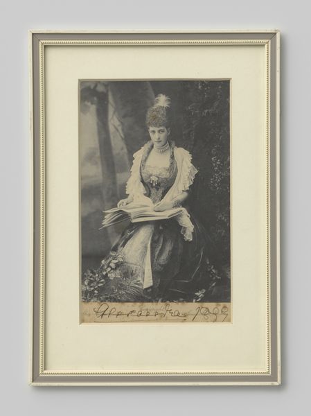 Curator: This gelatin-silver print, presented in what looks like a late 19th or early 20th-century frame, is entitled "Portret van een onbekende vrouw met een fiets" or, in English, "Portrait of an Unknown Woman with a Bicycle." It's attributed to Frederick Wiedhofft. My initial feeling is one of understated elegance. Editor: There is a poignant stillness here. It almost feels staged, with a performative gaze toward burgeoning ideas about female autonomy. The sepia tones create this timeless effect. Curator: Absolutely. Bicycles became powerful symbols of freedom and independence for women during that period. Notice how the bicycle isn't just a prop. It's positioned almost as an extension of her, a signifier of modernity. Editor: Indeed, this connects directly with evolving societal roles. The bicycle gave women greater mobility, breaking down geographical limitations. To be able to move freely was socially and politically radical, influencing not only social perceptions, but actual lived experience. Curator: And what of the woman herself? What impression does she evoke for you? Editor: She has an air of quiet confidence. While the photo is staged, the subtle hand resting on the bike and gaze strike a fine balance. I wonder if this posture speaks to the contradictions of her position in society at the time: she can possess her mobility but must be careful to stay within bounds. Curator: An interesting point. Her attire is quite typical, indicating respectability and control. But even the choice of outdoor setting lends another layer. Editor: This juxtaposition hints at internal tensions— the constraints and freedoms she is dealing with. It reveals so much about gender dynamics and the larger shifts impacting lives during this transitional time. Curator: Thank you, a lot to think about! It goes without saying that every detail here resonates deeply within the cultural framework of the time. Editor: A fascinating interplay, that shows how symbolic layers in art shape our perception of history and female experience.
