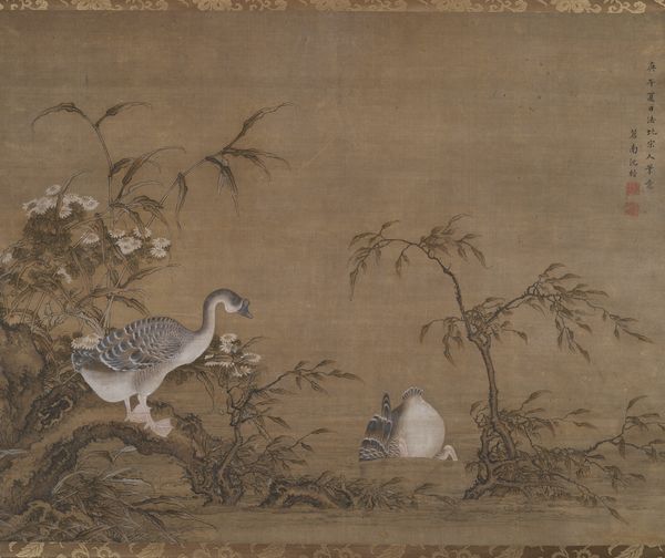 Editor: This textile panel, titled "Panel (Furnishing Fabric)", is from China, created sometime between 1644 and 1911. It reminds me of a serene, dreamlike landscape with its muted colors. What draws your eye when you look at this piece? Curator: I'm immediately interested in the material processes involved. The fact that this was intended as "Furnishing Fabric" is key. How does its function as a textile—something both beautiful and utilitarian—challenge our ideas of art versus craft? Considering its production, how did the availability and cost of dyes, the skill of the weavers, and even the loom technology influence its final form? Editor: That’s a perspective I hadn't considered. So you’re saying that the practical purpose of it is significant? Curator: Absolutely. Think about the social context of this piece. Was it for a wealthy merchant's home? A government official? How did its intended audience shape the imagery, the materials, and the overall design? The landscape motif, for example, could signify cultivated taste but might also reference an idealized pastoral existence quite different from reality. Editor: So, beyond just being decorative, it also reflects the values and aspirations of the society it was created in? Curator: Precisely. We must remember that textiles like these involved many hands and were often made in workshops. We have to ask whose labor produced this fabric? And how does knowing that influence our appreciation of the landscape depicted? Editor: It's amazing how a seemingly simple landscape scene can reveal so much about its creation and social context! I’ll definitely consider that next time I encounter a textile work. Curator: And remember, every knot, every dye choice tells a story. Keep digging into the material details. That’s where the real revelations are.