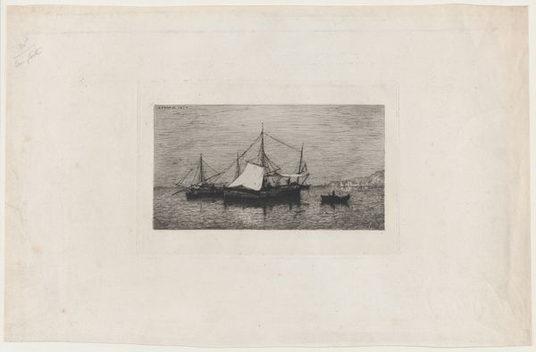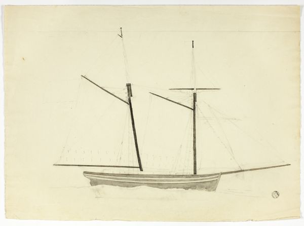 This is a drawing of a Keulse aak, a type of sailing barge, by Hendrik Abraham Klinkhamer. The pale washes create an atmospheric scene with muted tones, primarily in shades of gray. The composition is built around the contrast between the stillness of the water and the sails, which are angled against the mast. The reflection of the boat anchors it to its location within the pictorial space and suggests a mirroring of reality and representation. Klinkhamer used line and tone to create depth, as the sails are rendered with subtle gradations of gray wash, giving them volume and presence. The careful attention to the rendering of light on the water and boat enhances the sense of realism, while the limited palette brings a unified and harmonious feel to the composition. The drawing captures a moment of maritime life with sensitivity and restraint, allowing the viewer to appreciate the beauty of form and the play of light and shadow.
