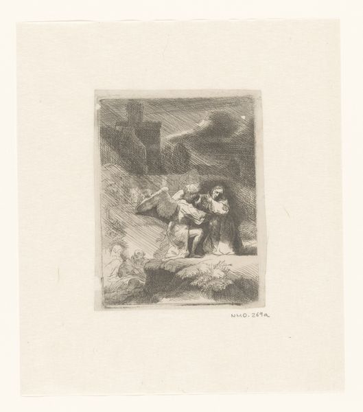E. Blum created this print called ‘Beekje met vogels langs een open veld bij een bos’, or ‘Stream with birds along an open field near a forest’, using etching. The absence of information about Blum leaves us to wonder about the identity of the artist, and how their experiences might have shaped this quiet, idyllic scene. This image prompts us to consider the cultural construction of nature as a site of leisure and escape. Historically, landscape art often served the interests of the dominant class, portraying an idealized view of the land that masked social inequalities and erased the labor of those who worked it. While seemingly innocuous, Blum's landscape subtly engages with themes of access and privilege. What does it mean to represent nature as a space of tranquility? And who gets to experience it in this way? This etching reminds us that our perceptions of nature are always mediated by social and historical forces.