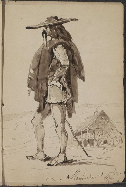 Cornelis Dusart created this drawing of a young man with a peepshow and a dog in the late 17th or early 18th century. Dusart was known for his depictions of peasant life, reflecting a broader interest in everyday scenes during the Dutch Golden Age. This image offers a glimpse into the lives of ordinary people, and the forms of entertainment available to them. The young man, likely a traveling entertainer, carries a peepshow, a portable box offering viewers a miniature, often wondrous, scene. The dog, ever present, hints at companionship, but also the itinerant nature of the young man's work. Consider the social class of the young man. The choice to portray a commoner suggests an interest in democratizing art, moving away from solely depicting nobility or religious figures. At the same time the drawings leaves us to consider the economic realities of 17th century life, and the ways in which people survived through entertainment. The artist emphasizes not only the material conditions of the young man's life, but also his relationship with the natural world, and the possibilities and limitations of entertainment in Dutch society.