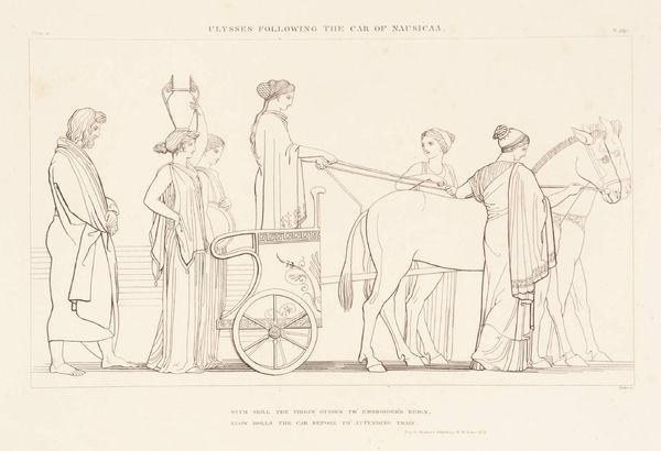 This line engraving of a scene from the Odyssey was made by John Flaxman, a British artist working in the late 18th and early 19th centuries. Engraving is an intaglio printmaking process, where the artist uses a tool called a burin to carve lines into a metal plate. Ink is then applied to the plate and wiped away, leaving ink only in the incised lines. The plate is then pressed onto paper, transferring the image. In Flaxman's time, engraving was a widely used commercial technique, and the graphic style of this artwork, with its clear, even lines, shows a relationship with this mode of production. It is quite different from the fine, freely drawn qualities usually associated with 'high art'. Flaxman’s choice of engraving connects this mythological scene to a wider social context of labor, industry, and distribution. By emphasizing the importance of materials, making, and context, we can begin to understand the full meaning of an artwork, challenging traditional distinctions between fine art and craft.