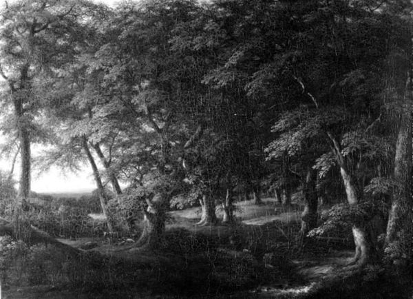 Cornelis Vroom painted "Forest Scenery" sometime during his life, between 1591 and 1661, using oil on canvas. Vroom was working in a period where the Dutch were asserting their independence, and the landscape became a potent symbol of national identity. But I wonder what a forest meant at the time? These paintings are about so much more than just trees. Were these lands open to everyone, or only a select few? Who is allowed to experience nature and who is excluded? While Vroom's landscape may initially seem like a straightforward representation of nature, it invites us to reflect on how social structures shape our relationship with the environment. This painting evokes a sense of both belonging and exclusion. It encapsulates the complex interplay between nature, culture, and power, reflecting a specific moment in history.