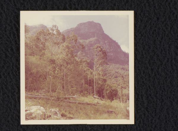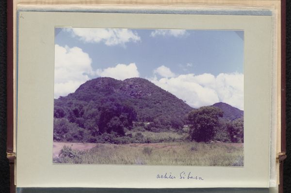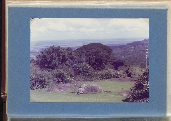 Editor: So, here we have Willem Jacob van den Berg’s “View from a Mountain Near Louis Trichardt, South Africa” from 1967. It's a photograph, and it has a really serene, almost nostalgic feel to it. I’m curious about your perspective. What strikes you most about this piece? Curator: The very act of image-making via photography itself speaks volumes. Consider the technology available in 1967 South Africa. Who had access to cameras, film, processing? The materiality of the photograph—the specific type of film, the printing process—all point to a certain level of privilege and access to resources within a specific socio-economic context. How does that influence our understanding of what we’re seeing? Editor: That's a great point. I hadn’t really considered the actual production. So the choice of capturing this idyllic landscape says something about who could afford to do so? Curator: Precisely. And beyond affordability, think about the purpose. What social function did photographs like this serve at the time? Were they for personal documentation, tourism promotion, or perhaps something else entirely? The image becomes not just a pretty landscape but a commodity, reflecting certain values and power dynamics inherent in its creation and circulation. How do you think the artist’s choices, like composition, frame this reality? Editor: I guess I assumed landscape photography was just about capturing nature, but framing it as a commodity really changes things. Looking at it now, the way the green lawn abruptly stops also feels purposeful; perhaps it's the contrast between manicured and natural landscapes. Curator: Exactly. The artificial foreground suggests labor, management, and control imposed onto nature. Editor: I’m beginning to see how much context is embedded in a simple photograph. Thanks! Curator: My pleasure, this picture proves that all images are culturally loaded and require further inspection.