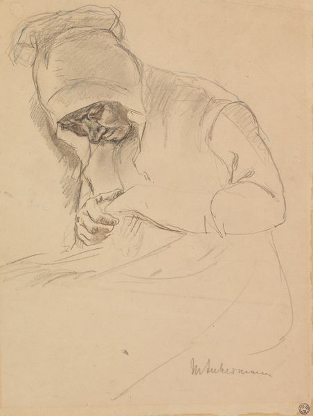 Curator: Here at the Städel Museum, we're standing before Wilhelm von Kobell's pencil drawing titled "Bildnis eines Zeichners mit Skizzenbuch, Brustbildnis im Profil nach links" which translates to "Portrait of a Draftsman with Sketchbook, Bust in Profile to the Left." Editor: It has such a gentle quality, a kind of understated intensity in the focus of the subject. It really feels like an intimate glimpse of a creative act in progress. Curator: Yes, and Kobell’s placement within the Romanticism movement emphasizes emotion and individuality. Here, he elevates the status of the artist—quite literally depicting the tools of artistic production. Notice how the simple act of drawing becomes a subject worthy of representation, reflective of the Romantic era's self-awareness of the creative process. Editor: I'm immediately drawn to the visible texture of the paper, it feels fundamental. The very act of drawing—the graphite laid down—becomes performative. And look at the clothing: simple, practical. This suggests an engagement with everyday life, and hints at the value in capturing and documenting those observations. This speaks volumes about access and the material conditions surrounding artistic creation at the time. Curator: Absolutely. The sitter's gaze is fixed on the sketchbook, absent of any overt interaction with the viewer, creating a closed world, accessible to the Romantic spectator, hungry for intimate encounters with genius. His Romantic profile portrait serves a symbolic function, aligning drawing as a process of invention and inner-thought, deeply connected with individual expression. Editor: The fact that we see him working, rather than a finished piece, fascinates me. It underlines art as a labor process. And the pencil as a relatively accessible tool plays a significant role. One wonders where his drawings ended up. The journey and context of sketches would reveal interesting ideas about social status and commerce. Curator: Indeed. This drawing shows how the Romantics used art as a vehicle for exploring the self and reflecting on society, making a political statement. I’d say we've gleaned new appreciation by closely considering how this piece situates within both historical art practices and political ideology. Editor: And for me, it reinforced the value and significance we can derive from sketches. Examining their materiality and purpose can be remarkably revealing regarding artistic intention and broader cultural forces.