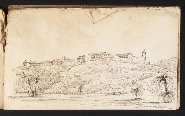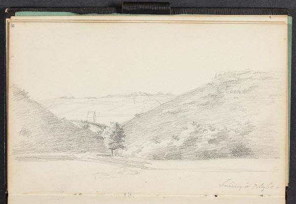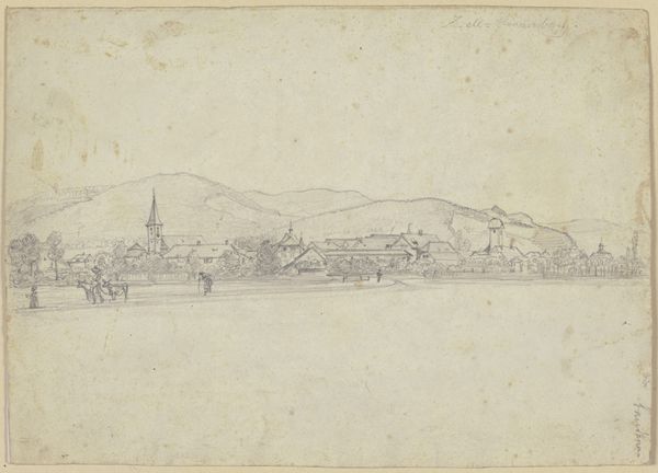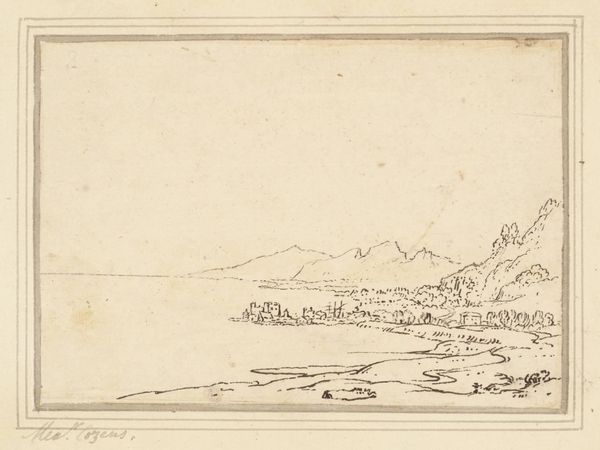 Editor: This is Carl Rottmann’s "Epidaurus," made with graphite and pencil on paper in 1834. There’s a really tranquil, almost hazy quality to this landscape drawing. What do you see in it? Curator: The first thing that strikes me is the interplay of line and tone. Rottmann's use of graphite allows for subtle gradations, building form and space primarily through variations in value, creating an atmosphere of receding distance. The composition also invites scrutiny. Note the placement of the landmass, and the tonal progression moving away from it. Editor: I see how the details become fainter the further back they are. Why choose such a restricted palette of grayscale tones? Curator: The choice might stem from a commitment to rendering light and shadow in their purest form, isolating those elements. This restriction can also act as a focusing agent. With fewer distractions of colour, the viewer is impelled to parse the forms presented, almost forcing us into the artwork's internal architecture, its composition. The line weights also change, depending on the subject’s distance from the viewer. What do you think this adds to the landscape itself? Editor: I guess it directs my focus to specific elements within the scene and accentuates the idea of depth and scale in the landscape. Curator: Precisely. Rottmann presents not just a depiction of place, but a considered, formal exploration of rendering depth, volume, and texture through strictly grayscale mediums. Editor: I hadn't considered how the limitations in colour enhance the other formal aspects so strongly. Curator: Absolutely, understanding formal structure really reframes one’s appreciation.