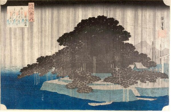 This is Oiso: Shower in Toraga, a woodblock print by Utagawa Hiroshige, made in Japan during the Edo period. Notice the downpour, rendered as sharp, diagonal lines dominating the scene. Rain, or ‘ame’, is a potent symbol in Japanese art, often representing cleansing, renewal, and the transient nature of life. The trees are bent as if in a ritualistic dance, bowing to the might of nature. Consider how such elemental depictions echo across cultures; the deluge in ancient Mesopotamian myths or the cleansing floods in biblical stories. These are not merely weather events; they are manifestations of collective anxieties and hopes, recurring motifs of destruction and rebirth. The emotional impact of the rain here is palpable, invoking a sense of melancholy, but also of peace and acceptance. The image carries within it layers of historical and psychological resonance, reminding us of the perpetual cycle of nature and the human condition.