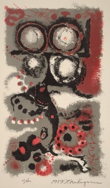 Tadashi Nakayama made this abstract print, "Rappa-Shu (Trumpeter) I," using woodblock printing, a technique deeply rooted in Japanese craft traditions. The work’s power resides in the contrast between the graphic clarity of the shapes and the textural richness achieved through the wood grain and layering of colors. Each color likely required a separate block, carefully carved and registered to build up the final image. This labor-intensive process speaks to the value placed on meticulous craftsmanship, where the hand of the artist is evident in every print. Nakayama’s choice of woodblock printing connects him to a long lineage of artisans, and his abstract approach breaks from the traditional subject matter of landscapes or figures. The resulting tension underscores the dynamic interplay between tradition and modernity. By focusing on the materials and making of "Rappa-Shu", we can appreciate how Nakayama elevates printmaking to a powerful form of artistic expression.