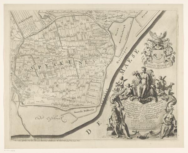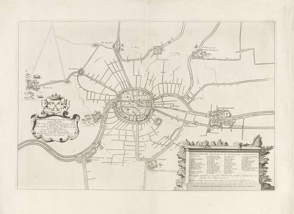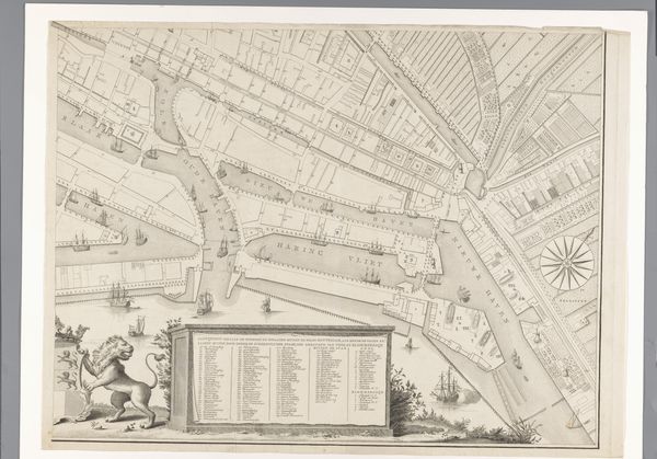Editor: Here we have "Kaart van het Hoogheemraadschap van Schieland (zevende deel)", a map created between 1660 and 1718 by Johannes Vinckboons. It’s a drawing rendered in ink, a detailed cityscape articulated with fine lines. What strikes me is how technical and precise it appears. What can you tell me about it? Curator: This map, seemingly simple, presents a compelling view into the material practices of its time. Notice the ink, the precise lines—these aren’t just aesthetic choices. They speak directly to the cartographer’s labor, to the physical effort involved in producing such detailed records. Think about the socioeconomic implications of land ownership. Editor: I hadn’t thought about the economic side. It feels almost purely informational, but I guess there had to be a practical purpose, not just a beautiful image. Curator: Exactly. These "cityscapes" reflect land control, hydraulic engineering and political power during the Dutch Golden Age. Land equals power. The means of creating and disseminating such a map, and the very materials used – the paper, the ink – underscore that production. Are we celebrating art, or technological craftsmanship? Is there a distinction? Editor: That's fascinating. So by focusing on the materials and what it took to make this, we’re getting closer to what this map meant back then? The tools needed, the skill... It reframes the work. Curator: Precisely! By examining its construction, we connect with the realities of labor, ownership and trade of the 17th century Netherlands. Editor: That's given me a lot to consider, really shifting how I view the art of map-making, thank you! Curator: It changes my perspective, too. Now I’m thinking about what inks they might have used.