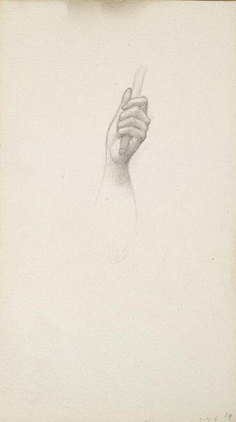 Editor: This is "Studies of Hands for 'The Bath of Venus'; verso: Study for 'Flamma Vestalis'" by Edward Burne-Jones. It's a pencil drawing, quite delicate. What do you make of it? Curator: The materiality of this sketch reveals the artist's process. The paper, the pencil strokes – these are the tools of production. Considering Burne-Jones's larger tapestries, how does this more humble medium inform our understanding of Victorian craft and labor? Editor: So, seeing this as a study, it’s less about the final artwork and more about the artist's method? Curator: Precisely. The repetition of the hand motif suggests the artist is striving for a certain level of refinement, but through a repetitive process of sketching. What do you think it meant for the artist to use a simple pencil in that era? Editor: It's interesting to consider the materials used in relation to the final, often grander, product. I'll remember that next time.