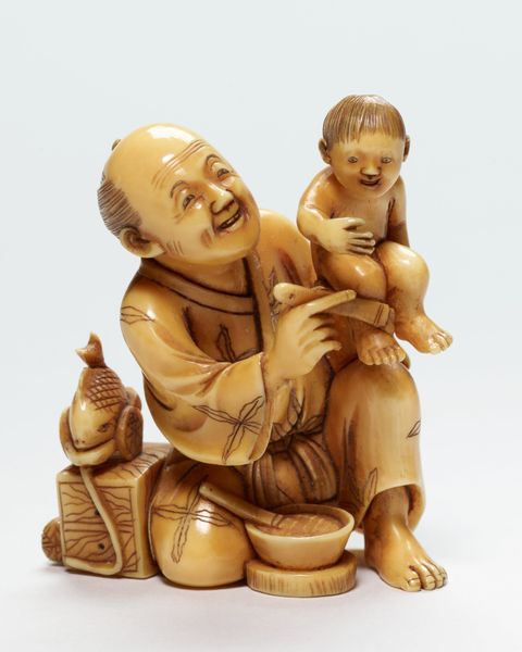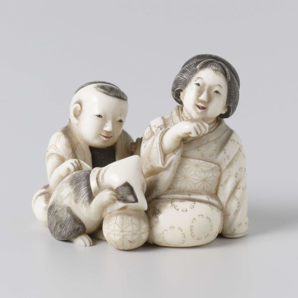 This netsuke, carved by Hogyoku, features two boys playing with a Daruma doll, embodying a rich tapestry of cultural symbolism. The Daruma doll itself, a representation of Bodhidharma, the founder of Zen Buddhism, symbolizes perseverance and good luck. Traditionally, its eyes are left blank, to be filled in when a goal is set and achieved, connecting the holder's will with the doll’s stoic determination. The boys' playful interaction introduces another layer. The gesture of pulling a face can be traced back to ancient theatrical traditions, where it was used to ward off evil spirits. Similarly, the motif of children in art often embodies themes of innocence, potential, and renewal, a powerful force that engages viewers on a deep, subconscious level. Consider how such lighthearted imagery has appeared across cultures. This netsuke is not merely an isolated object; it’s a node in a vast network of symbols, resurfacing, evolving, and taking on new meanings in different historical contexts.