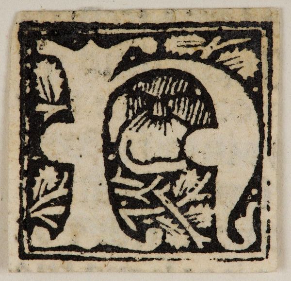 Editor: Here we have the woodcut "Initial O," artist unknown, from the Harvard Art Museums. It feels so compact, yet the letter itself is bursting with life. What do you see in this piece? Curator: The letter "O" acts as a vessel, a container for symbolic meaning. The foliate design, rendered in stark black and white, evokes a sense of growth, of something nascent unfolding. Editor: So it's more than just a letter? Curator: Absolutely. Consider the placement of the leaves, how they both support and emerge from the central form. This reflects the interconnectedness of all things. It is a reminder of our shared roots. Editor: I never thought of a letter having so much depth! Curator: Indeed. Symbols have a life of their own, continually evolving across cultures and through time.