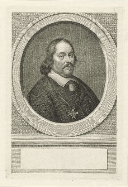 This is Willem Hondius’s portrait of Henricus Nicolai, made as an engraving sometime before 1660. Consider the weight of representation in the Dutch Golden Age, particularly for someone of Nicolai’s standing as a theologian and philosopher. Portraits were not mere likenesses but performed a vital social function solidifying the subject's status and legacy. Notice how Nicolai is portrayed with the tools of scholarship: the book in his hand and the learned inscription below the image, reinforce his intellectual identity. The image is framed by an ornate oval, a boundary that separates the sitter from the viewer, reinforcing his importance. What does it mean to be remembered in this way? How does the portrait serve to extend Nicolai’s influence beyond his lifetime, shaping his memory for future generations?