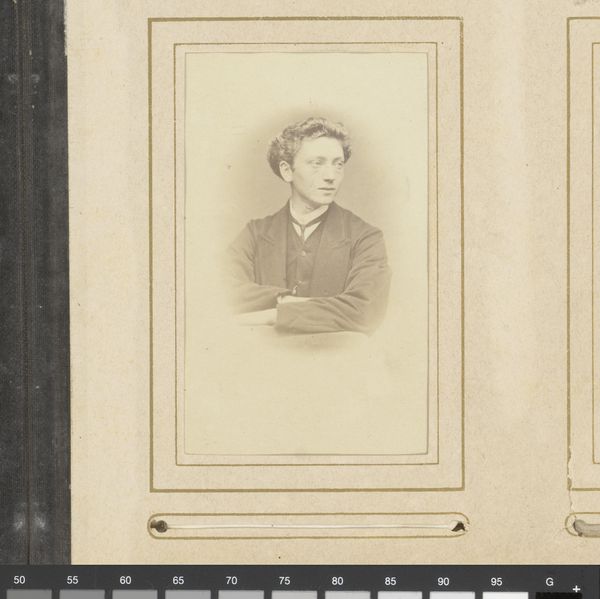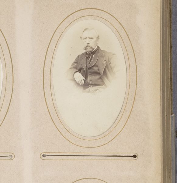 Editor: This is "Portret van een man," a gelatin-silver print portrait made sometime between 1861 and 1874, attributed to Albert Greiner. It’s striking how tactile it feels despite being a photograph; you can almost feel the texture of his coat. What aspects of the material production stand out to you? Curator: Well, the first thing that jumps out is the context of photographic portraiture at that time. Consider the labor involved in early photography—preparing the chemicals, meticulously posing the subject, the lengthy exposure times. Photography, although seemingly instant to us now, was initially a craft deeply embedded in material processes and dependent on the skilled labor of both the photographer and the sitter. The consumption of photographs became increasingly accessible and common, but they never completely removed manual process. How do the historical methods influence how we think about its reception today? Editor: That makes me think about how different that is from taking a picture on my phone today. Does the use of gelatin-silver particularly highlight some of these labour concerns, relative to other processes? Curator: Absolutely. Gelatin-silver prints involved a specific chemical process dependent on silver halides suspended in gelatin. The sourcing and preparation of these materials were deeply intertwined with industrial production and chemical supply chains of the period. And the gelatin itself, often derived from animal byproducts, points to ethical and consumption questions that might escape our notice. Editor: That's fascinating – I hadn’t considered those layers. Thinking about the chemical process adds such a new layer of understanding! Thanks so much. Curator: Indeed, considering the production and consumption gives us such deeper understandings about our present and future!