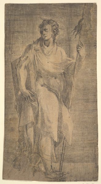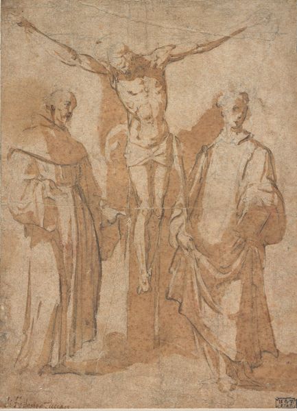 Taddeo Zuccaro created this sheet of studies for the Blinding of Elymas, Sacrifice at Lystra, and a Holy Family using pen and brown ink in the mid-16th century. The composition is dominated by a seated figure, draped in fabric, surrounded by smaller scenes and sketches. The red-brown ink lends a warm tone, while the varying line weights create a sense of depth and movement. Zuccaro employs a dynamic interplay between the central figure and the peripheral studies. This arrangement reflects a Mannerist sensibility, favoring complexity and artistic virtuosity over classical harmony. Semiotically, each sketch acts as a signifier, contributing to a network of meanings. The sketches also function as a form of visual note-taking, where the artist explores different narrative and compositional ideas. The sheet operates as a microcosm of Zuccaro’s artistic process, revealing how he grappled with the formal and conceptual challenges inherent in representing religious narratives. This study reminds us that art exists within a continuous process of interpretation.