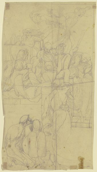 Victor Müller sketched this historical scene, depicting a ruler and his court mourning a figure lying before them. The act of mourning, as visually rendered here, invites contemplation across time. The postures of grief are particularly striking. Note the downcast heads and the way figures huddle together, gestures that echo through centuries of art, from ancient Roman sarcophagi to Renaissance depictions of the Lamentation. These gestures aren't merely aesthetic choices; they're carriers of potent emotions and cultural memory. Consider the motif of the veiled face, a symbol of mourning found across diverse cultures—from classical antiquity to modern times. This symbol speaks to a universal, almost primal, need to conceal oneself in the face of overwhelming sorrow. These visual echoes remind us that art is not created in a vacuum but is instead part of a larger, ongoing cultural conversation. The gestures and symbols employed are vessels carrying forward collective emotions. These images resonate because they tap into the subconscious, reminding us of the cyclical nature of human experience.