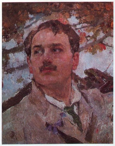 Editor: Here we have Denman Waldo Ross's "Portrait of a Man with a Moustache." It's an oil painting, and I'm immediately struck by the contrast between the subject's serious expression and the almost playful background. How do you interpret this contrast? Curator: I see this contrast as a reflection of the social tensions surrounding masculinity at the time. The rigid expectations of men were often at odds with the expression of individuality. Editor: So, the moustache becomes almost a symbol of that tension? Curator: Precisely. It's a mark of societal expectation, but the vibrant background hints at a suppressed desire for freedom and self-expression. Notice how the background almost seems to push against the formal constraints of the portrait. Editor: That's fascinating; I hadn't considered the background as a form of resistance. I’ll definitely look at portraits differently from now on. Curator: It is about looking at the whole picture, and questioning what is hidden.
