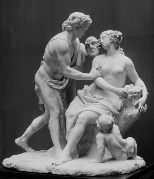 This terracotta sculpture of a Bacchic group was created by Claude Michel, known as Clodion, in the eighteenth century. Notice how Clodion masterfully captures a moment of dynamic ecstasy through the intertwined figures of a satyr, bacchante, and infant. The artist’s sophisticated treatment of the terracotta medium, with its varied textures and gradations, enhances the sculpture’s dramatic effect. The composition invites exploration of themes around classical mythology and the celebration of revelry. The embracing figures are arranged in a complex, spiraling composition, creating a sense of movement and energy. The bacchante’s gesture, reaching upwards, is in tension with the supporting satyr. The underlying principles of classical sculpture are here disrupted, to create an innovative approach to form and expression. Through the signs and symbols of classical mythology, Clodion destabilizes established notions of order and restraint, exploring themes of pleasure and freedom.