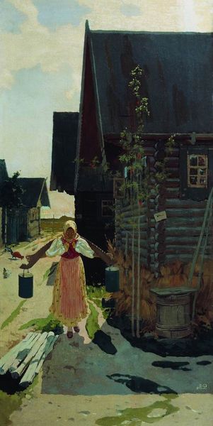 Lilla Cabot Perry created this painting, 'Alice in the Lane', using visible brushstrokes and a vibrant color palette to capture a young girl in a sun-drenched landscape. The composition employs a vertical format, with Alice positioned slightly off-center, inviting the viewer to follow the lane deeper into the scene. Perry uses light and color to break down conventional forms, creating a sense of movement and immediacy. The light isn’t just illuminating the scene; it's a structural element that defines shapes and textures. Perry’s use of Impressionist techniques challenges traditional notions of form and representation. The painting captures a fleeting moment of light and color, and also engages with broader questions about perception and the nature of reality.