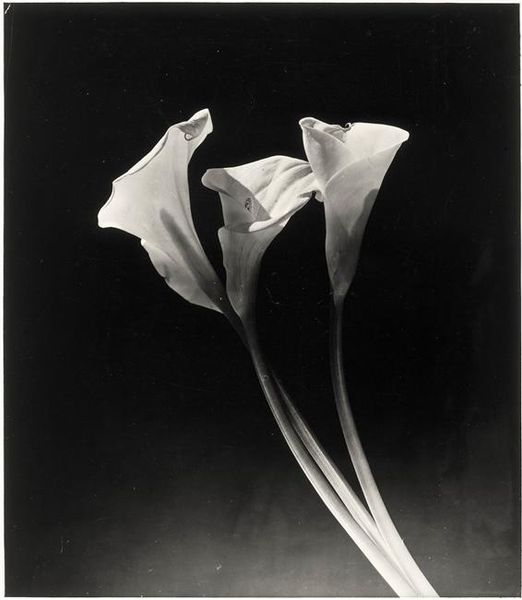 Editor: This is Sarah Choate Sears’ photograph, "Untitled (Madonna Lily)." The contrast is striking, making the flower almost glow against the dark background. What do you see in this image? Curator: For me, it's a study in contrasts, really. Sears captures the lily's delicate form with such sharp clarity, almost like a scientific illustration, but then she smothers it in this inky black. It's the Victorian era's love of both science and melodrama, all in one shot. Doesn't it feel a bit like a stage drama to you? Editor: It does, actually! I hadn’t thought of it that way. It's interesting how she uses light to emphasize the flower’s purity while the darkness adds a sense of mystery. Curator: Exactly! It’s a dance between light and shadow, innocence and, dare I say, a hint of the forbidden. It's rather intoxicating. I think I’ll go plant some lilies now...