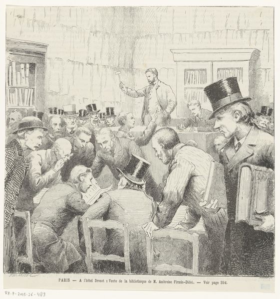 Curator: This is Norman Rockwell's "Visits a Ration Board," an oil on canvas completed in 1944. Editor: The composition is initially unsettling. A group of individuals occupy an official-looking interior, all rendered in subdued colors, yet there's an intriguing dynamism suggested by their poses and expressions. Curator: Indeed, Rockwell masterfully uses realistic, almost journalistic detail to depict a crucial aspect of the home front during World War II: the rationing of resources. Observe the architecture within this painting, an American flag situated front and center. Editor: I can't help but notice that all visual weight seems directed towards that group. The individual standing in the forefront by the window in a bulky coat. The arrangement certainly pushes the viewer’s eye along that trajectory, from the umbrella’s dark tip upward. I do love the symmetry offered by this composition. Curator: It underscores the bureaucratic processes shaping individual lives during wartime. These meetings dictated access to vital goods, a shared experience which further connected the entire American populous at home and overseas. Editor: So true, it does invoke those sentiments, but do you not sense an intentional narrative that builds to reveal the narrative structure that underlies every square inch? Every prop—coats draped over chairs, documents clutched—contributes, however subtly, to the construction of that unified visual schema. Curator: You are correct in the sense that his usage of props are indeed telling to that specific point in time. Editor: Rockwell presents us not only with a scene but also with the idea of American citizenship, and our roles in supporting it during wartime. What about it? I will admit I found the painting rather poignant despite the almost comic edge that underscores it. Curator: A visual time capsule which continues to teach us about art, society, and how a culture responds to social hardship through a unified lens of collectiveness.