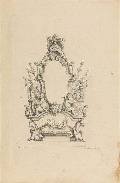 This delicate print, "Cartouches Nouvellement Inventez" was made by Jean Bernard Toro in the 18th century. Toro was a draughtsman, and this work gives us a glimpse into the world of design during the reign of Louis XIV, the Sun King. The print is an etching, meaning that lines were scratched into a coated metal plate, which was then submerged in acid. The longer in the bath, the deeper the lines. This allowed the printer to control the degree of light and shadow across the composition. The subject is an ornate cartouche: an ornamental frame. It's full of classical motifs: putti, trophies, and garlands of foliage. These were the bread and butter of artists like Toro. This print would have been circulated among sculptors, furniture makers, and other tradespeople in Paris, who would then adapt the design for use in wealthy clients' homes. It embodies the skilled labor of both the artist and the artisans who would realize it in three dimensions. It reminds us of how much design mediates the spaces of power and privilege.
