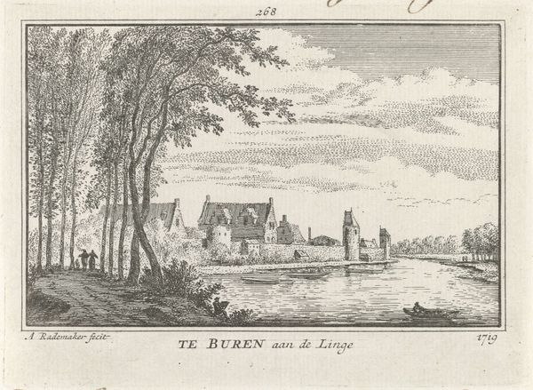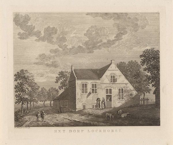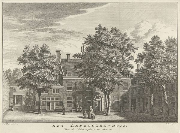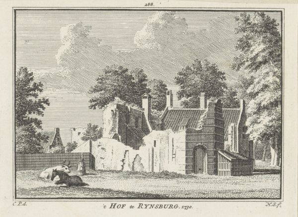This print of the Hof van Rijnsburg, was made by Hendrik Spilman in the 18th century. As an etching, the image begins with a metal plate, likely copper, coated with a waxy ground. The artist then uses a needle to draw through this ground, exposing the metal beneath. The magic happens when the plate is immersed in acid, which bites into the exposed lines, creating grooves. This is a skilled practice, requiring a deep understanding of materials, because the depth of the lines determine how much ink they will hold, therefore affecting the final print's tonality. Spilman would have then applied ink to the plate, wiping away the excess, so it only remained in the etched lines. Finally, the plate is pressed onto paper, transferring the image. The textures and visual effects achieved through this labor-intensive printmaking process, reflect the broader context of skilled craftsmanship in Dutch society during the 1700s, and the artistic value placed on meticulous execution. Appreciating this artwork means acknowledging the expertise, time, and labor invested in the making process.
