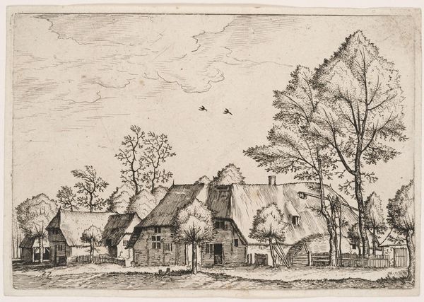 Pieter van der Borcht created this print, ‘View of a Village,’ using engraving, a meticulous process of incising lines into a metal plate. Look closely, and you can see how the network of fine lines builds up the image, creating tone and texture. Consider how this contrasts with the scene itself. The print depicts a rural village, a place of labor. Villagers herding sheep, ducks swimming in a pond, and houses with thatched roofs evoke a world intimately connected to the land and traditional ways of life. Yet, this scene is captured through a highly skilled and laborious urban process. The engraver's tools and expertise stand in contrast to the simple tools and materials of the village. The print, itself a product of specialized labor, invites reflection on the relationship between urban and rural, art and craft, production and consumption. It reminds us that even in idealized images of pastoral life, the traces of labor and the means of production are always present.