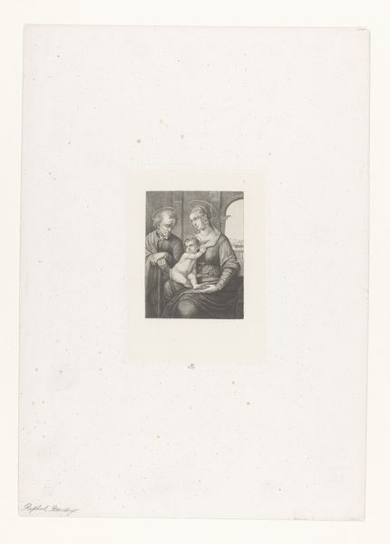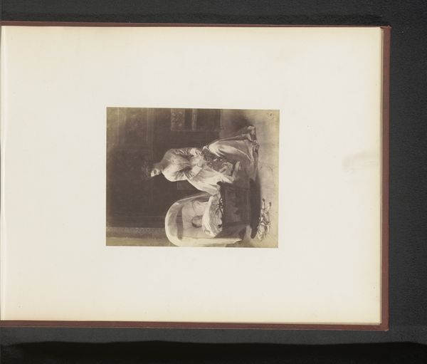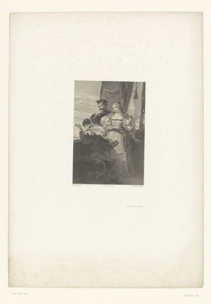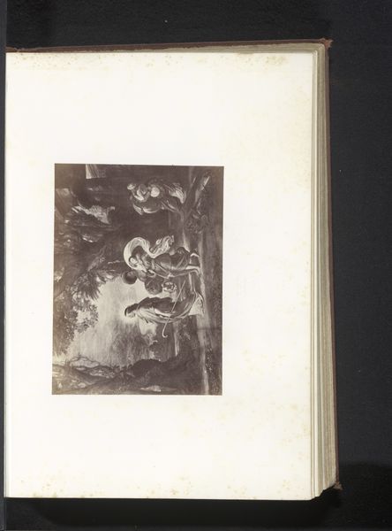 Curator: Here at the Rijksmuseum, we have a photograph titled 'Fotoreproductie van het schilderij De drie zusters door Jacopo Palma il Vecchio', predating 1875. It's a gelatin-silver print. What are your first thoughts? Editor: It strikes me as a very controlled image. The figures are beautifully posed but there’s a certain... distance. Like a study in idealized womanhood more than an intimate portrait. The black and white tones certainly enhance this feeling. Curator: The original painting by Palma Vecchio presents a rather fascinating instance of Renaissance portraiture viewed through a 19th-century lens of photographic reproduction. These reproductions circulated widely, shaping the perception of art and culture. It served as a means of disseminating artwork before modern printing technology became widespread. Editor: Absolutely. And this particular work allows us to question the dynamics of that dissemination. Who had access to this image, and what did it represent to them? How does the photographic medium change its perception, compared to seeing the painting itself? Considering issues of access is crucial; photography, theoretically, made art more accessible, yet socio-economic factors would still dictate who viewed it and where. Curator: A valid point, the transition from painting to photography influences the understanding. A painting, commissioned or displayed, served specific societal roles—signaling status, religious patronage, etc. Reproduction by photographic print transformed that purpose. What do we lose in the translation, and what is gained through increased distribution? Editor: In terms of the "gained," the photograph enables an objectification, the figures appear to be for sale or consumption. They don't own their own representation, but were subjects in a transaction in both versions: in the painting, their status as desired people of the nobility, and here as subjects for general consumption of wealth, beauty and power, and a standard against which female visitors measured themselves and others. Curator: Considering that women, historically, were often excluded from art spaces or were confined to domestic roles, these photo-reproductions played a part in disseminating notions of femininity and female archetypes that impacted social mores of the day. The very composition lends to discussions regarding standards of beauty within a patriarchal culture. Editor: Precisely! It invites reflection on what those standards are, how they were enforced, and who benefitted from their enforcement. So, while seeming innocuous, even romantic perhaps, it invites us to actively challenge assumptions surrounding female identity, history, and the politics of art. Curator: It's a layered interaction when we bring in history and context. Editor: Exactly. A quiet piece, that still has a lot to say about past, present, and even future power dynamics.