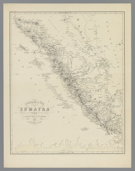 Franciscus Josephus Ensinck created this map of the Dutch East Indies in the 19th century. The most striking element is the depiction of the islands themselves, resembling fragmented bodies scattered across the sea. Maps have long been imbued with symbolic power. They are not merely geographical tools; they represent ownership, control, and the imposition of order onto the unknown. Think of the medieval "mappa mundi," where Jerusalem was centered, reflecting a divine worldview. In Ensinck’s map, we see a similar assertion of power through cartographic representation. The detailed rendering of coastlines and administrative divisions subtly communicates colonial authority and the desire to catalogue and control the landscape. This act of mapping stirs deep psychological undercurrents, connecting to our primal instincts to define territory. The sea, often a symbol of the unconscious, surrounds these lands, suggesting the hidden depths of cultural interaction and the untold stories of those who inhabit them. The map, therefore, becomes a powerful stage where political ambition, cultural memory, and psychological projection converge, inviting viewers to ponder the layers of meaning embedded within its lines and symbols.