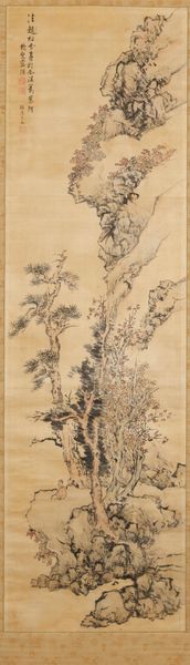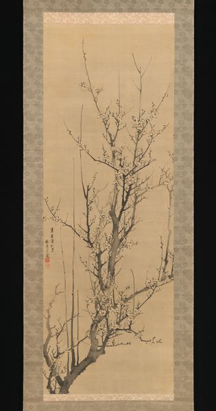 Editor: This is "Ink Plum and Bamboo" by Hoashi Kyoju, created in 1856 using ink on paper. I find the contrasting textures, especially the sharp bamboo leaves against the soft plum blossoms, really captivating. What can you tell me about it? Curator: Indeed, this contrast speaks volumes. Plum and bamboo, recurring motifs in East Asian art, carry considerable symbolic weight. The plum, braving the winter frost, symbolizes resilience and renewal, embodying Confucian ideals of perseverance. The bamboo, with its flexible strength, represents integrity and humility. Notice how the artist uses different brushstrokes to delineate these qualities. What feelings do these symbols evoke for you? Editor: I see. The plum, especially, feels hopeful. The bamboo does give a feeling of uprightness, almost moral strength. What about the rock at the base? Curator: Excellent question. The rock, often included in these depictions, symbolizes longevity and steadfastness. Together, these three elements – plum, bamboo, and rock – form a potent visual metaphor for the virtuous scholar, weathering life's storms with unwavering character. Can you sense how these combined images reinforce each other? Editor: Yes, absolutely. They're like a visual poem, each element contributing to a larger meaning. Curator: Precisely! These enduring symbols provide a tangible link to cultural values passed down through generations. Do you find that understanding these symbols alters your appreciation of the work? Editor: Definitely. Knowing the symbolism makes the painting feel deeper, more meaningful than just an aesthetic image. It makes me think about how different cultures encode values in their art. Curator: That's a very insightful observation, and exactly the point. Understanding these cultural shorthands unlocks layers of meaning embedded within the visual language.