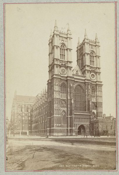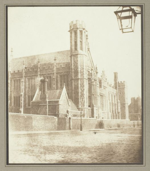 Curator: Here we have a photograph from between 1870 and 1881 of the Guildhall in London, credited to Francis Godolphin Osbourne Stuart. Editor: There's something really ghostly and imposing about it, isn't there? That stark courtyard, the heavy, ornamented architecture pressing down... I feel a bit small looking at it. It almost sucks the color right out of the scene, despite, obviously, not being a colorful scene to begin with. Curator: It’s certainly a statement of civic power. Look at the detail achieved in the print, it’s remarkable. The photograph must have taken great skill. How did someone achieve this in the 1870s? The sharpness of the architecture, even at a distance. I would assume a longer exposure and a steady hand. Editor: Absolutely. And it makes you think about labor too, doesn't it? About the stonemasons, glassmakers, all the unseen hands that went into erecting the Guildhall itself, which this photograph captures. The sheer quantity of materials, the transport logistics in the 19th Century, all for this display of… well, governance. It speaks volumes, silently. Curator: You're right, thinking about the process makes me reflect upon all the work that is represented in this artwork in two distinct aspects: creating this majestic Guildhall and taking such high definition photos at that time! I wonder what statement the photographer meant to create? What meaning the photographer extracted from his craft? Was this more than just "pointing and clicking?" Editor: I doubt it, though he likely wanted to record it with some accuracy. Also, consider the distribution. A print like this, reproduced, made this civic symbol accessible to a wider public. Before mass media, how did the common person engage with something like this? Curator: I love that it invites us to think about history on multiple scales, from the grand design of a city to the solitary figure with their camera in a courtyard. What remains and what decays. Editor: Indeed, it encourages us to understand an archive and see its influence to this day. Thank you for your insights!
