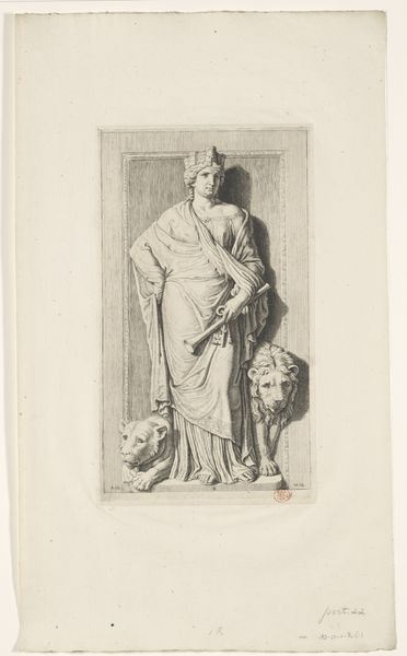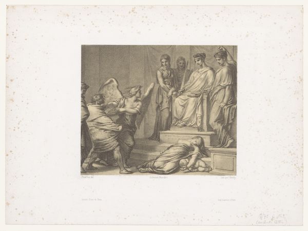Editor: So, this is Gerard van Honthorst's "Meleager and Atalanta," a drawing from around 1625 to 1655, made with pen and brown ink on paper. It's incredibly delicate. What catches my eye is the stillness—it feels like a captured moment from a play. How do you read the imagery in this piece? Curator: The enduring power of images lies in their ability to compress entire narratives and emotional landscapes into singular, potent forms. Here, the seemingly static scene is brimming with symbolic tension. Meleager, identifiable by his staff and feathered hat, and Atalanta, reclining serenely, are figures pulled from Greek mythology. Their very presence evokes the themes of heroism, love, and tragic destiny. Do you notice anything particular about the inclusion of the dogs in the drawing? Editor: I hadn’t thought about them much. They almost look like spectators. Curator: Exactly! They are not mere pets, they serve as symbols. The dogs might represent loyalty, but in the story of Meleager and Atalanta they could foreshadow the hunt and its violent outcome, a culturally persistent metaphor. Editor: That's fascinating, it makes the drawing seem more complex and layered than I initially thought. How interesting that even in what appears to be a simple drawing, Honthorst embeds so much symbolism. Curator: Precisely! It illustrates how visual symbols act as cultural touchstones, enabling the narrative to resonate across time and place, sparking our own individual memories and connections. Each viewer becomes a participant in the storytelling. Editor: That's a great way to look at it. Thanks for shedding light on the symbolism; it has really enriched my understanding. Curator: My pleasure. It is through this conscious exploration of symbolic imagery that we access the layered, continuing dialogue between the artwork, history, and ourselves.