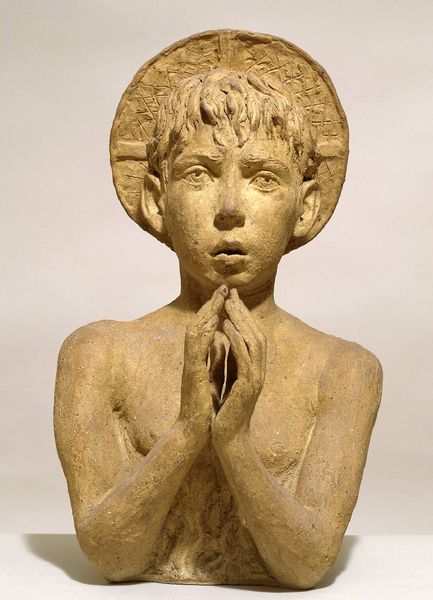 Editor: Here we have Svend Rathsack’s 1931 wooden sculpture, “Head of a Greenlandic Boy.” It's quite striking how the simple material gives such a lifelike, almost melancholic quality to the face. What stands out to you, what story do you think it tells? Curator: The enduring power of a portrait lies in its ability to condense identity into form. Look at the closed eyes, how they function almost as an ideogram for contemplation, an internal world we’re not privy to. Do you sense the cultural implications embedded in the act of portraying someone from Greenland during this period? Editor: I suppose I hadn't considered the power dynamic inherent in that. Greenland was a Danish colony then, wasn't it? So, there’s a relationship of subject and…colonizer? Curator: Exactly. The sculpture itself becomes a symbolic space. What do you make of the stylized hair? Almost like a helmet. Is it protective, or restrictive? Editor: I hadn’t thought of it as restrictive, but now that you mention it… perhaps it symbolizes cultural containment, or an attempt to define identity? The simplicity also feels very deliberate; paring the boy down to an "essential" representation. Curator: Precisely! And consider the choice of wood: a living material, yet shaped and controlled. Rathsack invites us to reflect on the lasting imprint of cultural encounters, how identity is both formed and perceived. The sculpture serves as a touchstone. Editor: This has really opened my eyes. I now appreciate how a portrait is never neutral; it is imbued with layers of historical and cultural significance. Curator: Indeed. By contemplating its symbolic weight, we can start to untangle narratives of identity, representation, and enduring human connection.