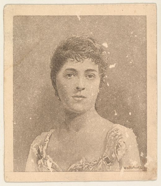 Editor: This is "Portrait, from the Women's Portraits series (N198)" by Wm. S. Kimball & Co., created around 1889. It's currently at the Metropolitan Museum of Art. This feels like a photograph trying to be a drawing – it's got a dreamy, soft focus, and I'm really curious about the medium. What strikes you most about this portrait? Curator: The sepia tone really gets me – it whispers of old photograph albums found in attic trunks, don't you think? It’s fascinating how it occupies this liminal space, you're right, between photography and drawing. This portrait seems to be a mass-produced print imitating fine art, made to be distributed with tobacco products! How ironic, offering up beauty alongside vice. Do you think it succeeds? Editor: I do see that tension! It's… ambitious, but the softness makes it feel sincere. Maybe the mass production aspect takes away a bit of its unique personality, paradoxically. What was the intention behind blending the styles? Curator: I wonder if the softness was intended to 'glamorize', to soften the sharp edges of reality and present an idealized image of women? And it makes me wonder who *she* was. Is this someone real, do you think, or an amalgamation of an era’s idea of beauty? That very blurriness you see also shields us from getting too close. Editor: That’s a point, like she's deliberately kept at arm's length. This conversation has me reconsidering it - from a simple portrait to a commentary on manufactured beauty, quite literally sold alongside tobacco. Curator: Absolutely. And art, you see, often smuggles itself in disguised as commerce, doesn't it? It’s delightful when the past manages to startle the present into fresh thought.