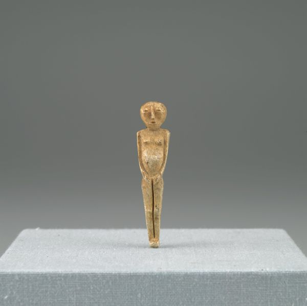 Editor: So, here we have "Pendant in the Form of a Seated Musician," made around 1000-1500, likely from the Veraguas culture. It’s bronze, and very small. I find its simplicity quite striking; there's something serene in its posture. What do you make of it? Curator: It’s more than serenity; it's about cultural representation and the role of music. This pendant speaks volumes about Veraguas society. Consider its historical context: this wasn't just decoration. What power dynamics might this musician embody, placed between the earthly and spiritual realms? Editor: Power dynamics? I hadn't thought of that. It seems so peaceful. Do you think the music itself held significance? Curator: Absolutely. Music was integral to ceremony and power. Imagine the symbolism embedded in this musician: Are they a shaman, mediating between worlds? A royal performer solidifying the chief’s authority? Consider, too, the material: bronze, a valuable commodity. Who had access to it? What does that say about social hierarchies? Editor: That makes me rethink my initial impression. It’s not just a musician; it’s a statement of social order. The bronze would have made it a really precious object, a way of showing status. Curator: Precisely. The image may be calm, but the object is charged. These objects often depict ideals of beauty. What gender ideals might have been at play in the way the musician is sculpted? Does this fit our current idea of beauty? Editor: Good point. It challenges how we define beauty and status. This little pendant really opens up big questions about identity, culture, and power. Curator: It does indeed. That is what makes art and objects such as these enduring voices through time.