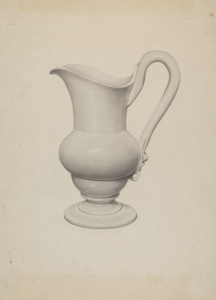 Editor: This is "Pewter Jar," a pencil drawing from around 1939 by R.J. De Freitas. It feels incredibly detailed and realistic. How do you interpret this work, considering its subject matter? Curator: I see this seemingly simple drawing as a commentary on the domestic sphere, especially during the late 1930s. A pewter jar, a common household object, becomes the subject of artistic scrutiny. What does it mean to elevate the mundane? Editor: That's interesting! I hadn't thought about the act of choosing this particular object. Was there anything going on in the world then that might relate? Curator: Absolutely. Consider the context. The late 1930s was a time of economic hardship and growing anxieties about war. Representing a humble object like this jar could be a reflection of a turn inwards, a focus on what is essential and enduring in the face of uncertainty. Perhaps even a critique of the opulent displays of wealth seen in previous decades? Editor: So, it’s not just a jar; it's about the values and priorities of the time. The "A" on the lid makes it unique. Curator: Exactly! And the choice of pencil as the medium contributes to this feeling of simplicity and austerity. Does that suggest anything about accessibility to you? Or about the idea of art as something other than extravagance? Editor: Definitely. It makes the art seem more accessible, less exclusive. Almost like saying art is about seeing the beauty in everyday things, and it shouldn't be only for the elite. I like that so much. Curator: And what about the perspective? Consider where the jar is placed on the paper, alone in the vast expanse. How does that contribute to its narrative? Editor: I never would have seen that without your help, I am grateful for this new perspective! Curator: And I learned so much as well from hearing your thoughts.