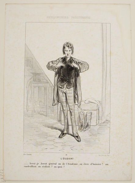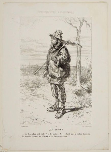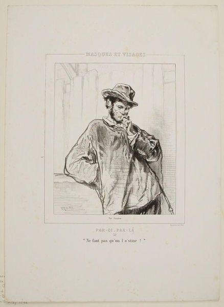 Editor: Here we have "Bohemians. A translator of Tibulle" by Paul Gavarni. It's a stark image, almost forlorn. What do you see in this piece? Curator: I see a commentary on the romanticized poverty of the bohemian artist. Gavarni, working during a time of increasing industrialization, critiques the societal structures that push artists to the margins. Is this freedom or forced alienation? Editor: So, it's less about celebrating the bohemian lifestyle and more about questioning it? Curator: Precisely. Consider the title, "translator of Tibulle." Is Gavarni implying a disconnect from contemporary society, a retreat into classical texts as a form of resistance or perhaps, escapism? Editor: I hadn't considered that. It adds a layer of complexity. Curator: Indeed. The image prompts us to question the romantic narratives we often attach to artistic expression and examine their socio-political roots. Editor: Thanks, I'll never look at bohemians the same way again.