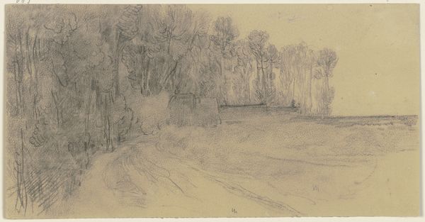 Editor: We're looking at "Landweg," a pencil and drawing by Pieter H.J.J. Ras, potentially from 1933. I’m immediately drawn to the use of line to create a sort of ethereal landscape, and I am very curious about Ras' choice of media. What can you tell us about the cultural landscape in which Ras was operating, and his material choices? Curator: Well, let’s consider the context. 1933 places us in a period of immense social upheaval. The Great Depression had a profound effect on artists and the materials they were able to access. Pencil and paper were economical and readily available – a practical choice but perhaps also a conscious one. There's a certain humility inherent in such common materials, wouldn’t you agree? Editor: I hadn’t thought about it that way, that it's not necessarily only expressive, but potentially the economical nature of the art is important, too. Curator: Precisely. And look at how he’s used them. It’s not just about representing the landscape, but about documenting the very *process* of observing. What do you think he is documenting, and how is the documentation impacted by using just graphite and paper? Editor: The barren trees, the path… it speaks to a quiet observation, perhaps a reflection of the widespread anxieties of the time. And by sticking to a limited, mundane medium, the artist allows for broad distribution through methods like photography. Curator: Yes! By emphasizing the handmade yet replicable nature, the drawing itself democratizes this observation and provides a stark reflection on the anxieties that are happening throughout Europe and the rest of the world. Editor: I’m struck by the thought of “Landweg” as a quiet response to broader social and economic forces – that a drawing is not only something aesthetically pleasing, but is something that speaks to access and production. Curator: Exactly. It reminds us to always look beyond the surface, to question the artist’s role as a worker responding to and shaping their environment.