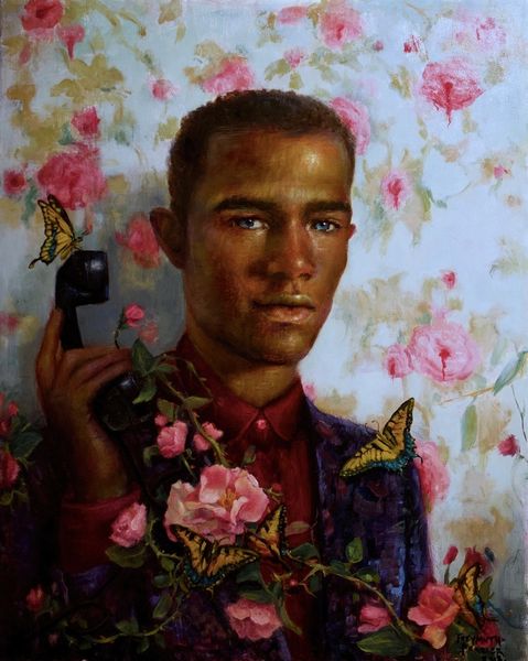 Kehinde Wiley made this portrait of Barack Obama using oils on canvas. The first thing I notice is the surface—how flat and even it appears, almost like a mural. It's clear Wiley is interested in this tension between flatness and depth. The wild, maximalist background of leaves and flowers seems to push forward, while Obama himself is rendered with a smoother, more traditional realism. There's a real push and pull. Look at the way Obama's hands are painted – the light catches the knuckles and fingernails, grounding the figure in a recognizable reality against the almost psychedelic backdrop. Think of someone like David Hockney, who also plays with flatness and perspective, but Wiley brings a whole different cultural context and a fresh take on portraiture. It's a conversation across time, constantly reimagining what painting can do.