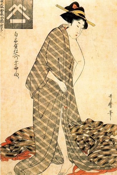 Curator: Here we have "Courtesan" by Katsushika Taito II, now residing here at the Harvard Art Museums. Editor: The texture is what strikes me immediately – the way the colors and lines have been applied makes the figure look almost like it's emerging from the paper itself. Curator: Absolutely. When considering the social context of courtesans in Edo-period Japan, it's important to remember they were not simply objects of desire, but wielded considerable cultural and economic power. Editor: And this print itself becomes a commodity, doesn't it? The woodblock technique allowed for mass production, making images of these figures accessible to a wider audience, raising questions of labor and value. Curator: Precisely! The print invites a dialogue about the complexities of gender, class, and artistic representation. Editor: It’s a testament to the enduring power of art to capture fleeting moments and complex social realities.