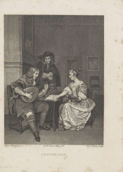 This print, made by Henricus Wilhelmus Couwenberg, depicts a mother playing music with her two children. The lute she holds becomes a symbol of harmony and cultured domesticity, reflecting the values of the Biedermeier era in which it was made. The lute connects us back to the Renaissance and even further to ancient traditions where music was a powerful symbol of order and civilization. Think of Apollo, the Greek god of music and poetry, often depicted with a lyre. The act of making music with family can be seen as a symbol of social harmony, that carries the weight of cultural memory through generations, reflecting a longing for simpler, more connected times, even as society continues to transform around it. This scene evokes a sense of idealized family life, a powerful force that continues to resonate, resurface and evolve through time.