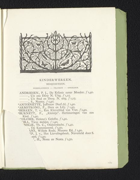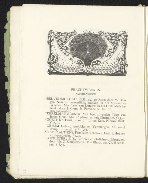 Curator: Let’s turn our attention to a work currently housed in the Rijksmuseum, "Titelhoofd met sieraden" or "Title Page with Jewelry," created between 1893 and 1894 by Gerrit Willem Dijsselhof. Editor: My immediate reaction is how ornamental it feels. It evokes both nature and elaborate artifice. Curator: Dijsselhof was a key figure in the Dutch Art Nouveau movement. This work, executed with pen and ink, showcases his distinctive ornamental style. The symmetrical arrangement and stylized botanical motifs remind me of medieval illuminated manuscripts and the book design of William Morris. What symbolic significance might you find? Editor: Well, given its creation date within the Dutch Art Nouveau period, also known as the *Nieuwe Kunst*, one cannot neglect how new techniques of industrialized production democratized decoration and ornament, providing access to the rising merchant class of this period. Looking at the artwork in terms of labor, it could also reflect the time-consuming handmade designs accessible to wealthy collectors during the Dutch Golden Age of the 17th century. This connects directly to Dutch cultural identity and a sense of historical continuity. Curator: The jewelry certainly stands out as the centerpiece. Beyond mere adornment, jewels and organic motifs carried loaded associations. The precise geometric patterns and repetition evoke ideas of natural cycles and cosmic harmony that preoccupied artists and designers during this time. Perhaps Dijsselhof hoped to ennoble even everyday objects through the language of symbolism and fine craftsmanship. Editor: It makes me think about labor division within this particular era and cultural obsession. Jewelry carries value—both economic and emotional. I consider jewelry an enduring testament to consumption, but not the craft itself. As mass-produced ornaments flooded the markets, something special had to separate artwork from "mere craft". The focus shifted onto something less easily duplicated by machines: a certain aura of originality. Curator: A fruitful reflection, indeed, to consider how Dijsselhof weaves craft, art, and nature. Editor: And I must add—consumption and production—during the tumultuous cultural climate of the *fin de siècle.*
