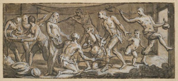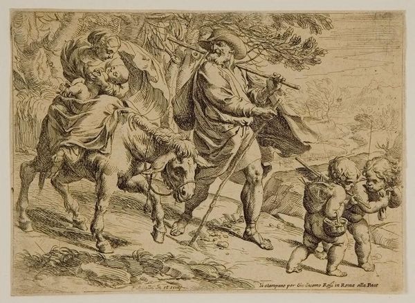 Editor: This is Giuseppe Maria Mitelli's "Christ Bearing the Cross." It's a densely populated scene rendered with fine lines, and it feels incredibly burdened, both physically and emotionally. What can you tell me about it? Curator: This print powerfully depicts not just the physical burden Christ carries, but also the societal burdens of injustice and oppression. Consider how Mitelli uses the crowd—are they active participants, complicit bystanders, or potential allies? The expressions, the body language... it all speaks to a complex, often uncomfortable, truth about power dynamics. Editor: It makes me think about who bears the weight of societal problems and who benefits. Curator: Exactly. And how that burden is often disproportionately distributed along lines of gender, race, and class, even today. This piece serves as a reminder of our collective responsibility. Editor: I hadn't considered that, but the image definitely holds more depth now. Thanks! Curator: It's in these connections between the historical and the contemporary that art truly speaks.