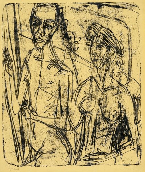 This image is by Pablo Picasso, titled "Two naked figures", and it's made using printmaking techniques. I love that Picasso wasn't trying to hide the process here; each line feels so deliberate and energetic. The stark contrast between black and white really grabs you. The texture is created by these dense, scratchy lines. Look at the way he uses hatching and cross-hatching to build up the forms of the figures. See how the lines around the figure on the left create a sense of movement? It’s like the figure is vibrating with energy. The whole composition is full of dynamic tension, making it feel immediate and alive. It reminds me of some of Goya's etchings in its raw emotional power. These works aren't about perfect representation; they’re about capturing a feeling, an idea, with a bold, unflinching directness. Art is always a conversation and exchange of ideas.